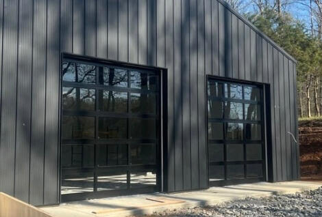 Full-view glass garage door systems providing modern aesthetics with aluminum, foam insulated frames, double pane options, and multiple glass options.